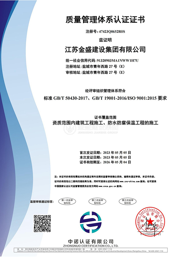 • 質量管理體系認證證書